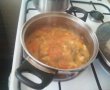 Se adauga conopida si fasolea verde, pasta picanta facuta la blender se acopera si se mai lasa 15 minute pe foc.