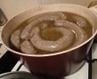 Cand sunt gata fierte, scoatem bucatile de gusa si ficat si le lasam sa se raceasca. Zeama in care au fiert nu se arunca.