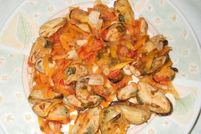 In uleiul de masline pus la incins se adauga rosiile, morcovul, usturoiul, ceapa, toate taiate marunt, zeama de lamaie, patrunjelul taiat marunt, sarea, piperul si dupa vreo 13 minute se adauga fructele de mare si se mai lasa cam 10 minute.