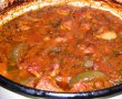 Se pun rosiile taiate cubulete, pasta de tomate, pasta de ardei si se mai fierbe 15-20 de minute pana scade.