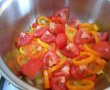 Este sezonul dovleceilor și din multele rețete pe care vreau să le pun în aplicare am ales-o mai întâi pe aceasta: o mâncărică gustoasă și apetisantă, cu ardei grași mini și cu roșii. Celelalte ingrediente au adus un plus de savoare preparatului, foarte aspectuos, în forma sa finală, nu numai gustos.