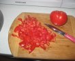 Intre timp pregatim restul ingredientelor. Cartofii ii curatam de coaja si ii taiem cubulete. Morcovul se curata si se taie rondele. Ceapa se curata si se taie marunt.
