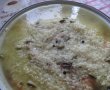 Ea a facut preparatul in “rice cooker” dar eu neavand l-am facut intr-un vas mai inalt pe care l-am bagat la cuptor. Puteti sa-l preparati si deasupra pe aragaz...