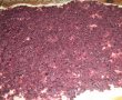 Intindem aluatul dospit pe masa de lucru infainata, ungem un strat consistent de crema (budinca+fructe calite), apoi rulam strans aluatul, ca la rulada.