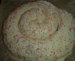 In tava tapetata cu hartie de copt asezam apoi sulul de aluat umplut, rotindu-l in forma de melc.