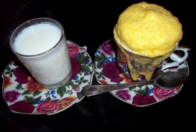 Intr-o cana se pun 4 linguri de faina, 1 lingura de cacao, 4 linguri de zahar si 1/2 lingurita de praf de copt. Se amesteca foarte bine ingredientele uscate, dupa care se adauga oul. Se amesteca din nou, pana cand intreaga compozitie s-a omogenizat; se adauga,apoi 3 linguri de ulei si 3 linguri de lapte. Se amesteca usor si se toarna in cana compozitia rezultata.