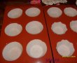 Separam albusurile de galbenusuri, dupa care batem albusurile spuma. Cand s-au intarit adaugam treptat zaharul, galbenusurile unul cate unul, uleiul si la sfarsit cele solide: faina, praful de copt si zaharul vanilat si esenta. Dupa ce le-am incorporat le punem in forma de briose si le dam la cuptor timp de 20 de min la foc moderat