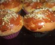 Lasam cozonaceii la crescut in forme, alte 15 minute, apoi ii ungem cu galbenus batut, presaram cristale de zahar si seminte de canepa si dam apoi tava la cuptor pentru 40 minute.