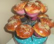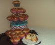 Impartim aluatul in bucati de marimea unei mingi de tenis,intindem aluatul pe masa de lucru infainata, asezam bucatele de rahat si de ciocolata, apoi rulam aluatul si il rasuscim, asa incat sa incapa in formele de briose din silicon.