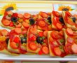 Cu o forma patrata sau rotunda,taiem aluatul de foietaj dezghetat la temperatura camerei.Punem aluatul taiat intr-o tava acoperita cu hartie de copt.Ungem fiecare bucatica cu ketchup si deasupra punem rondele de cremvursti,sunca presata taiata cubulete,ardei fasii,rondele de masline fara samburi si deasupra radem cascaval sau punem parmezan.Dam la cuptor pana se rumenesc frumos.Se servesc calde.