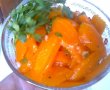 se curata si se taie morcovii in forma dorita si se pun la fiert (eu ii las de obicei aldente ca la paste :)).se stoarce lamiia.sucul rezultat il amestecam cu restul ingredientelor (eu facind pentru copiii nu am pus camun si nici paprika) iar cind morcovul este fiert turnam peste el.se lasa la rece jumatate de ora dupa care poate fi servit .in momentul servirii se pune patrunjel verde