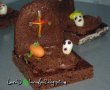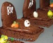 Pentru asamblare, taie din chec dreptunghiuri de o marime incat sa se potriveasca cu piatra funerara.Unge fiecare mormant cu Nutella apoi lipeste la margine piatra funerara.Decoreaza mormintele cu bomboane (dupa dorinta) apoi presara-le cu firmituri de chec (daca ti-a mai ramas).