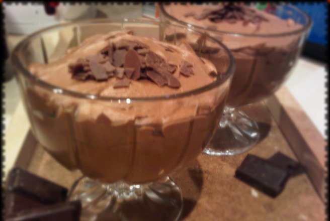 Topim ciocolata in bain marie si o lasam sa se raceasca putin. Batem cu mixerul smantana, adaugam zaharul si apoi ciocolata topita impreuna cu cafeaua. Impartim mousse-ul in boluri si lasam la frigider ptr cca 2 ore. Decoram cu fulgi de ciocolata.