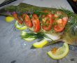 Se așează într-o tavă tapetată cu hârtie pergament, pe pat de felii de lămâie.