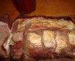 Muschiuletul l-am taiat felii si l-am asezat in cratita cu 3 linguri ulei, pe care prajit pe ambele parti (cateva minute). Apoi am adaugat pasta de tomate, cartofii, sare, usturoiul taiat feliute si apa cat sa se acopere. Apoi faina am amestecat-o cu putina apa si am turnat peste sosul din cratita. Am amestecat usor si spre final am pus si piper, cimbru, foi dafin. Am lasat sa se fiarba bine totul si cand totul a fost gata am servit cu mare placere, alaturi de castraveciori in otet.