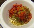 Amestecam uleiul, rosia, ardeiul, usturoiul,cimbrul, boiaua si vegeta.