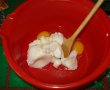 Se amesteca ouale cu praful de sare se adauga osanza si se omogenizeaza,apoi un pahar cu lapte caldut si praful de amoniac. Se adauga faina si se framanta o coca densa. Am lasat la rece cca 1/2 ora coca, apoi am format bilute pe care le-am pus in forma si le-am copt.