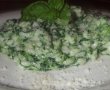 Cand e aproape gata,adaugam spanacul decongelat si stors bine.