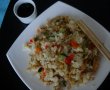 Am servit orezul, stropit cu sos de soia. Un deliciu!