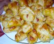 se intinde foaia de aluat, se taie in patrate (marimea o alegi tu).fiecare patratel se unge cu mustar si deasupra se aseaza o bucatica de carnacior si o feliuta subtire de castravecior,se presara putin piper si se pliaza sub forma de plic.se ung cu galbenus de ou si se introduc in cuptorul incins si se lasa 30 minute sa se rumeneasca.
