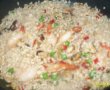 dupa ce au fost sotate se vor adauga fructele de mare peste legume si vom adaugam si mazarea, proaspata sau congelata.