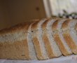 Punem toate ingredientele in cuva masinii de paine in ordinea de mai sus. Setam masina pe programul de framantare si dospire, la mine dureaza 1h 25min. Apoi scoatem aluatul din cuva masinii si il impartim in 2. Punem painicile in tavi si le lasam la crescut pana se incalzeste cuptorul. Le coacem la 200 grade timp de 25 min. Le scoatem din tavi si le punem pe un gratar la racit.