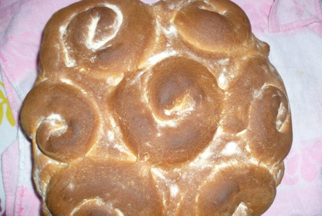 am luat aluatul si l-am framantat din nou pe masa de lucru, am rupt 1/4 din el si l-am pus in tava cu hartie de copt iar dintr-un sfert de aluat am modelat niste " trandafiri" le-am zis eu...da nu stiu exact ce-a iesit...