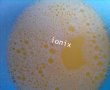 Laptele se mixeaza cu zaharul si un praf de sare iar apoi se adauga galbenusurile, treptat.