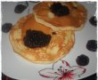 Ungem cu putin ulei o tigaie si punem cu polonicul cate o clatita de 10-12 cm diametru. Coacem pe o parte pana apar bule si marginile incep sa se rumeneasca. Intoarcem si mai coacem cam 1 minut.Am servit cu dulceata de mure