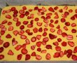 Dam la cuptor intr-o tava ( 29*35cm ) unsa cu ulei si tapetata cu hartie de copt, pentru cca15-20 minute; intre timp batem albusurile spuma tare cu un praf de sare, iar la sfarsit adaugam zaharul si mixam pana se topeste .