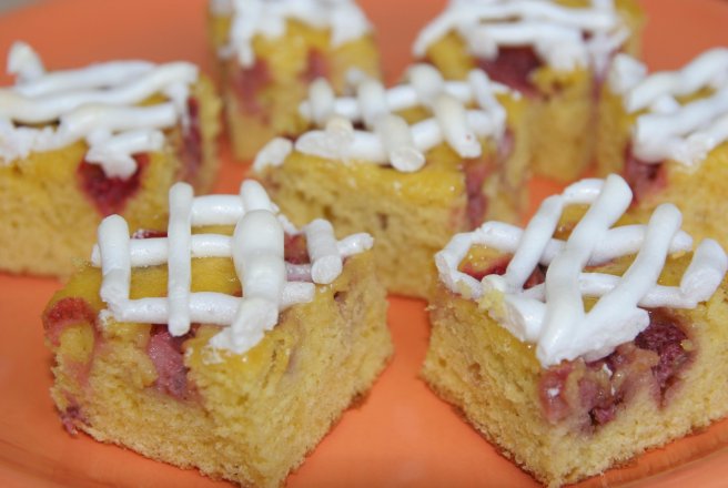 Cu ajutorul unu spritz modelam spuma de albusuri deasupra pandispanului si mai dam la cuptor pentru cca 5 minute (atentie sa nu se arda spuma de albusuri).