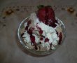 se bate bine frisca si cand s-a racit de tot se adauga in compozitie si se amesteca cu o paleta, apoi se pun si capsunii taiati felii subtiri. eu am pus compozitia intr-o cutie de inghetata...mi-a mai ramas inca si am mai pus intr-un bol si am pus la congelator peste noapte.