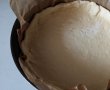 Aluatul se intinde pe masa de lucru in foaie rotunda, putin mai mare decat tava in care se va coace pasca. Se tapeteaza forma cu hartie de copt, se aseaza aluatul cu grija, inclusiv pe margini. Se toarna umplutura, se niveleaza si se da deoparte. Din restul de aluat se fac impletituri care se aseaza pe margine si pe mijloc in forma de cruce. Se unge aluatul deasupra u oul batut si se da la cuptorul preincalzit la 180 de grade pentru 30-35 de minute, pana se rumeneste frumos deasupra.