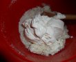 Intr-un caston punem branza dulce,zaharul,zaharul vanilat,omogenizam,apoi adaugam smantana,grisul,ouale si stafidele.
