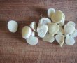 Se adauga restul de 2 catei de usturoi striviti si se fierbe inca 5 minute fara capac, sa scada sosul de pe pastai.