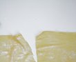 În timp ce întinzi aluatul, înfăinează-l bine ca să poți să îl așezi un pic ca în poza de mai jos, să încapă pe masă, nu alta!