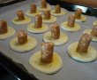 Carnaciorii ii taiem in bucati lungi de aproximativ 5 cm (cred ca trebuie sa fie mai mic ca sa nu patiti ca mine si sa se rastoarne) si ii asezam in mijlocul cercului.
