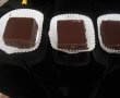 Pregatim o tava de 20/30 cm si punem inauntru "plastelina" obtinuta. Nivelam bine si apoi ne ocupam de crema. Incalzim smantana punem peste ciocolata rupta cat mai marunt si untul, lasam putin la racorit si turnam deasupra peste blatul de biscuiti. Dam la frigider cateva ore si apoi taiem cubulete pe care le punem in hartiute pentru bomboane sau briose.