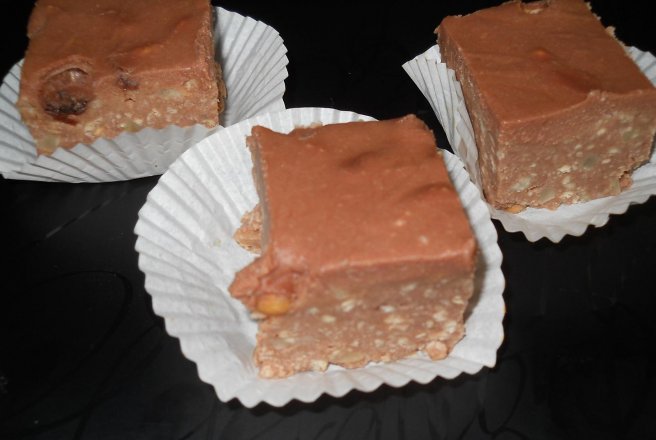 Incalzim smantana, adaugam ciocolata taiata bucati egale, untul si lasam pe foc amestecand pana se topeste. Adaugam alunele si stafidele, lasam putin sa se raceasca si turnam peste biscuiti. Dam la rece cateva ore, eu am lasat peste noapte.