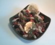 Ardeiul l-am calit in 2 linguri de ulei impreuna cu oregano si busuioc. L-am lasat apoi 5 minute deoparte sa se raceasca.