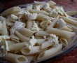 Fierbem pastele conform indicatiilor de pe ambalaj, le trecem prin jet de apa rece apoi le punem intr-o tava termorezistenta unsa cu unt.