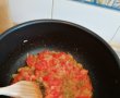 Intr-o cratita punem ceapa tocata marunt si ulei de masline la calit-adaugam foi de dafin si usturoi, apoi rosiile tocate marunt-lasma sa se caleasca sis a se inmoaie bine, aduagam putin suc de rosii din conserva si apoi pasta de rosii-punem sare, piper ,sos picant dupa gust-nu prea mult. Apoi aduagam macaroanele-si turnam din supa de peste.