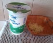 Curatam usturoiul , dam pe razatoare , condimentam cu sare si piper si turnam iaurt peste , amestecand bine ;