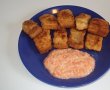 Am servit cu mamaliga si mujdei ( am pregatit pentru acest peste pane un mujdei care ne place foarte mult: la mujdeiul clasic pregatit cu ulei, sare si otet am adaugat o rosie decojita mixata in robot ).