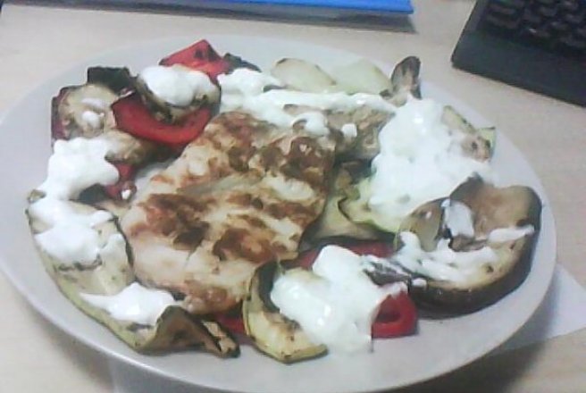 Legumele: vinetele si dovlecei se taie in felii longitudinale, ceapa se taie in sferturi si ardeiul in bucati mai mari urmand a-se a se pune pe grill.