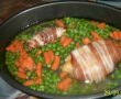 Vom lua amestecul de legume(morcovi si mazare) care in prealabil s-a dezghetat si  vom introduce legumele in vasul pe care il vom introduce la cuptor, in acest vas adaugam putin ulei de masline punem pieptul de pui si legumele, dupa maxim 5 minute adaugam si o ceasca de apa, saram si piperam si lasam 20 de minute la cuptor.