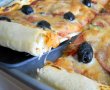 Ne place tare mult pizza cu blat subtire si margini cu branza, iar reteta asta mi-a reusit de fiecare data si nici nu-mi ia mult timp.