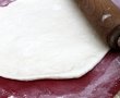 Se intinde o foaie cu ruloul si se pune intr-o tava unsa si tapetata cu hartie de copt.