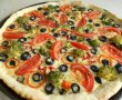 Deși rețeta mi se părea interesantă, am adus unele modificări: am preparat aluatul meu preferat (pentru că nu am dat niciodată greș cu el, a crescut frumos și repede întotdeauna și a fost pufos și gustos după coacere) am folosit o cantitate mai mare de cașcaval, am mai adăugat niște ardei grași mini, am condimentat cu oregano (care-mi place mult) și în ultimă instanță mă gândeam să adaug și un ardei iute, de curiozitate... Bine că n-am adăugat și ardeiul iute, căci unul din cei doi mini ardei grași era deja iute-iute....! Iar pizza a fost foarte gustoasă, pufoasă și bună, iar cașcavalul i-a dat un gust excelent, așa că terminat-o imediat.