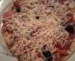Se unge pe toata suprafata lipiei cu ketkup,se asaza dupa bunul plac feliile de rosii,ardeiul,maslinele si salamul pe intreaga suprafata ,se da la cuptor pentru 8-9minute.